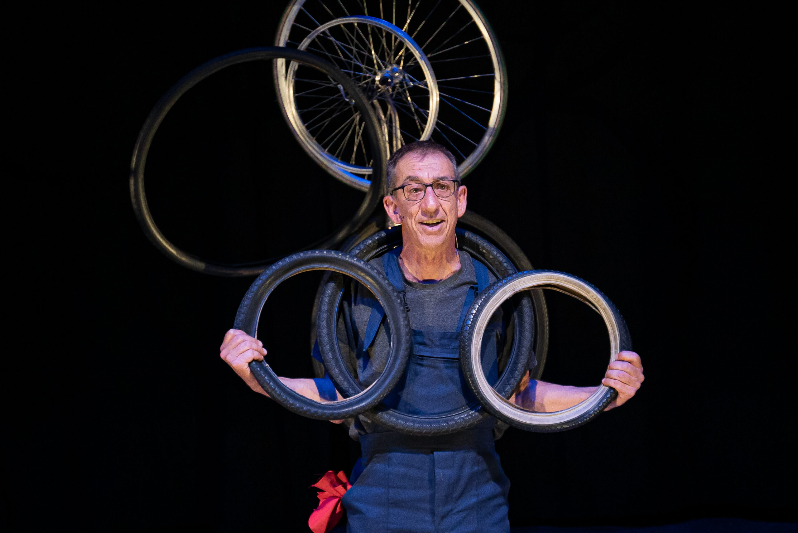 In scena c’è un attore-giocoliere. Che diventa artigiano del ricordo, che ha fatto della manualità il suo linguaggio e del corpo la sua voce più sincera.